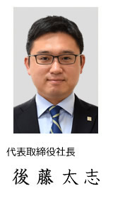 代表取締役会長 後藤 昇平 代表取締役社長 後藤 太志 取締役 安杖 鉄平 取締役 後藤 慶行 取締役 濱口 早恵 取締役 作原 英輔 取締役 後藤 裕子 執行役員 岡本 輝彦 監査役 古米 晋 |